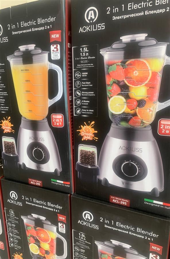 ✅ ACKILISS ACL-295 ბლენდერი და ყავის საფქვავი. მოცულობა:1,5 ლიტრი, კონტეინერის მასალა:მინა. ✅️ სიმძლავრე: 1000 Watt. Show original