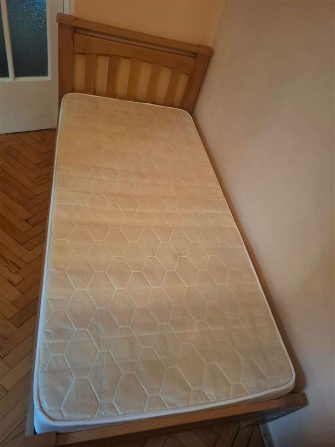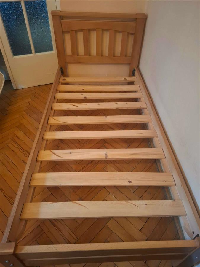 ვყიდი ხის საწოლს ორთოპედული მატრასით ოჯახიდან. ზომა 90 X 200.