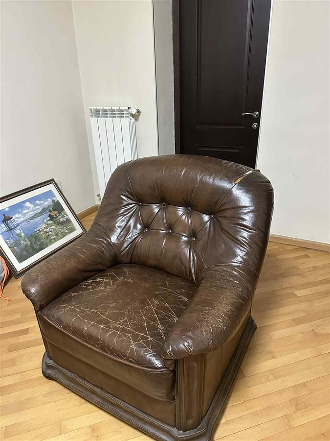 იყიდება ბელუქსის ტყავის დივანი და სავარძელი. ფასი-200 ლარი Show original