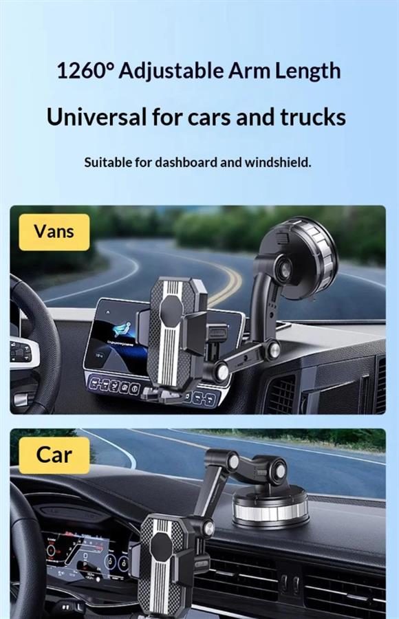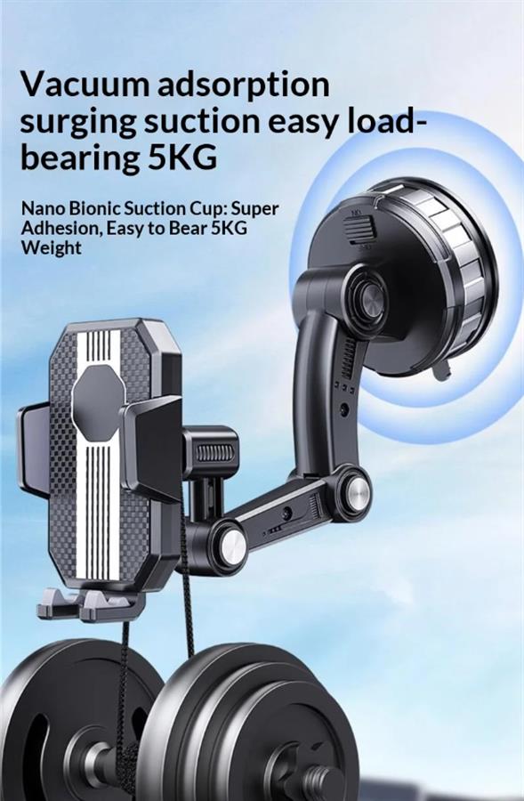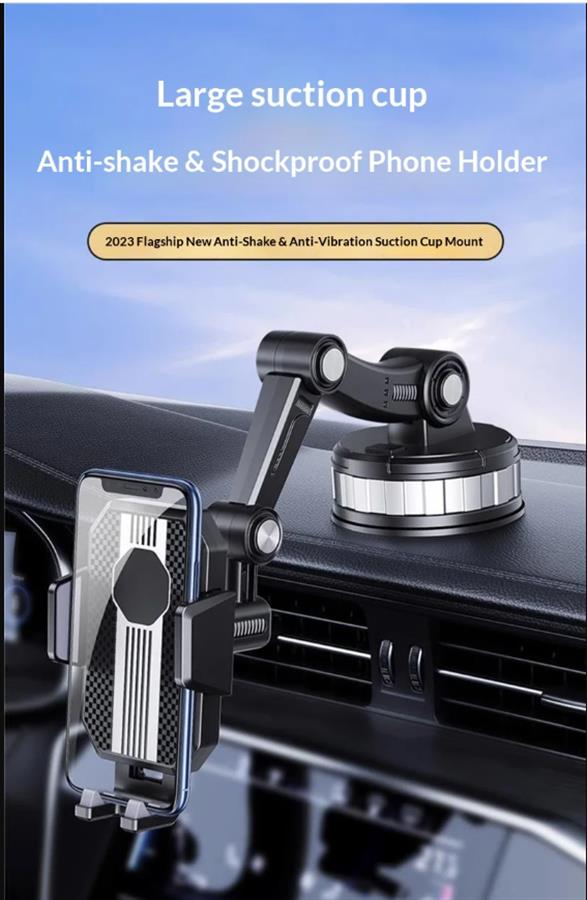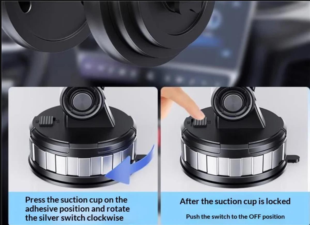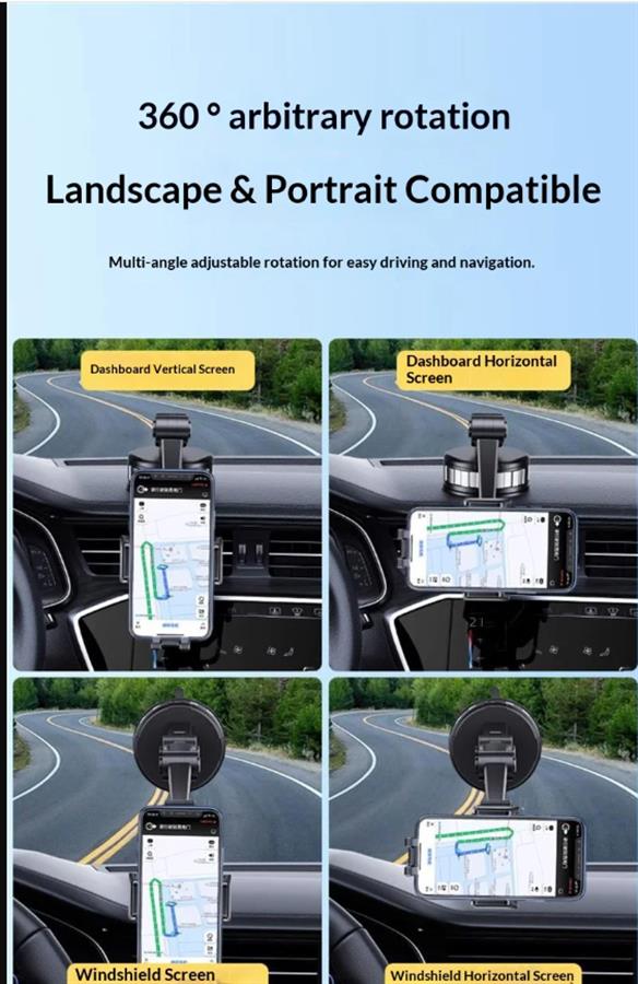 360°-იანი მბრუნავი უნივერსალური ავტომობილის ტელეფონის დამჭერი — საქარე მინის შემწოვი სადგამი iPhone-ისა და Samsung Xiaomi-სთვის, ხელების გარეშე მართვისთვის