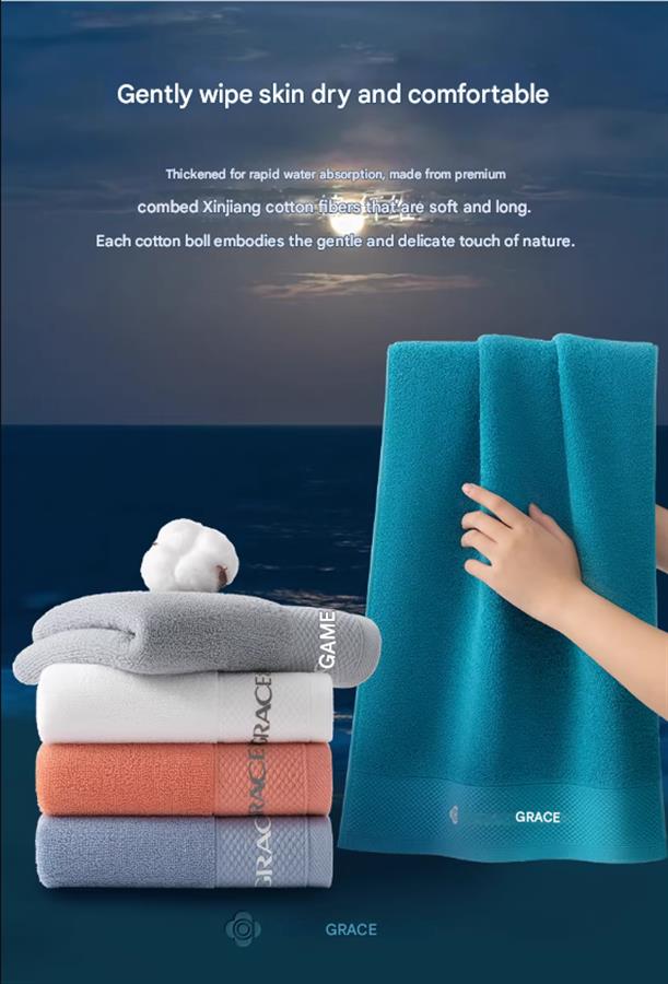 ახალი Jieliya-ს პირსახოცები, დავარცხნილი, თერმულად დაპრესილი დიზაინით, სუფთა ბამბა, პირველი კლასის ხარისხი, რბილი, შთამნთქმელი, სახლის პირობებში გამოსაყენებლად კომფორტული, ლურჯი და მუქი ნაცრისფერი.