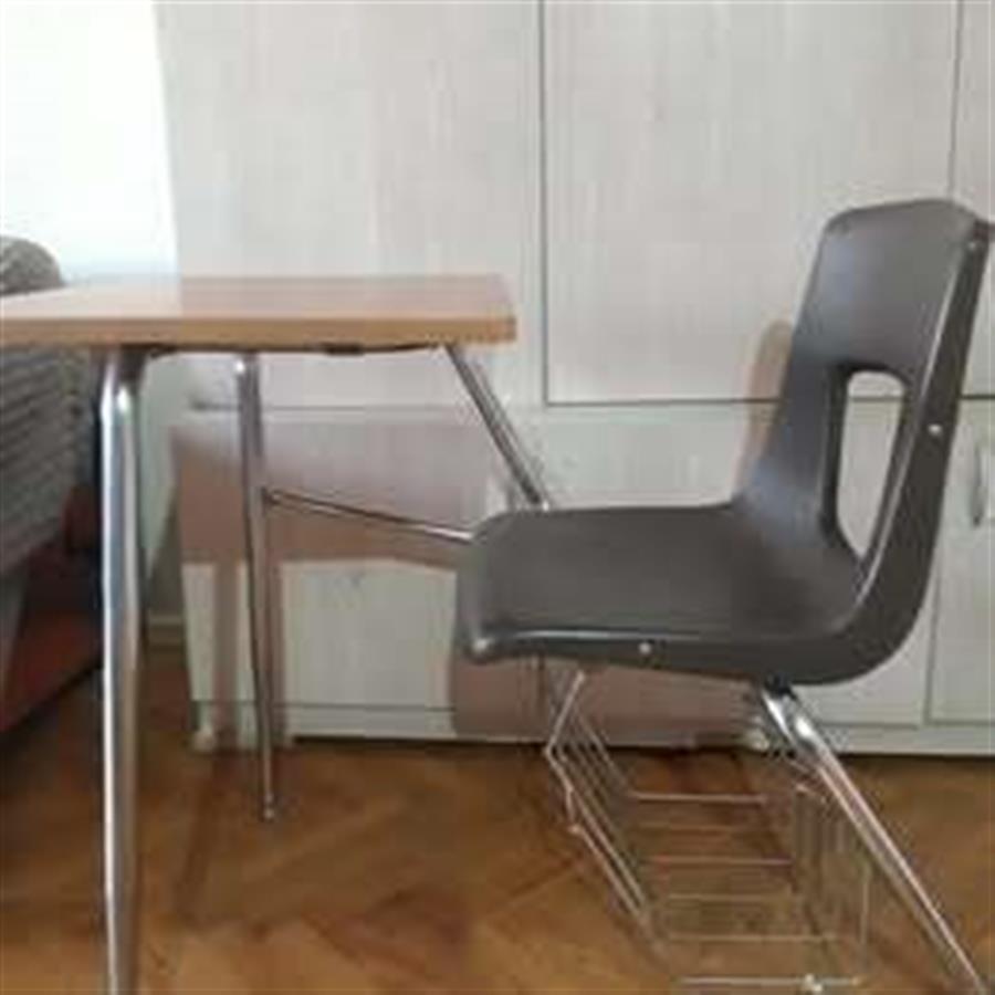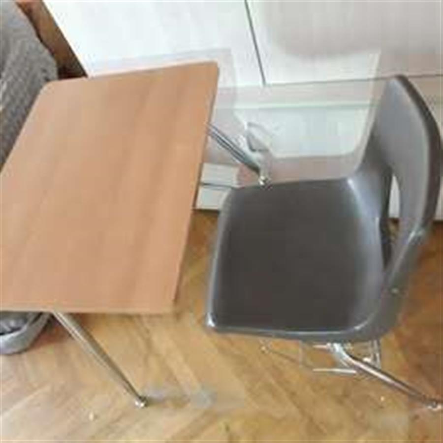 იყიდება სამეცადინო მერხი - პლასტმასის სკამი და დსპ მაგიდა ლითონის კარკასზე. აქვს 4 ფეხი, ძალიან მყარია. Show original