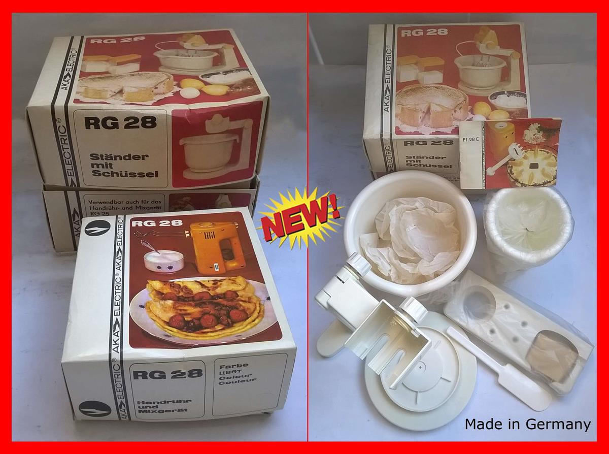 იყიდება აბსოლუტურად ახალი (უხმარი) მაღალხარისხიანი ვინტაჟური რარიტეტული ორიგინალი გერმანული მიქსერი "Rg 28s" "Aka Electric" Made in Germany (GDR German Democratic Republic - DDR Deutsche Democratic Republic - Deutsche Demokratische Republik) / წარმოებულია გერმანიაში. 3 სიჩქარიანი / სამსიჩქარიანი, 3 სიჩქარე / სამი სიჩქარე. მაღალი ხარისხის საკონდიტრო მიქსერი, სამზარეულოს მიქსერი, კულინარული მიქსერი. მიქსერი ბლენდერი სადგამი თასი ჯამი. მიქსერი თავისი ქარხნულ ორიგინალურ საფირმო შეფუთვაში ყუთში კოლოფში. ვინტაჟი, რარიტეტი. ფასი შეთანხმებით. მდებარეობა: თბილისი.Show original