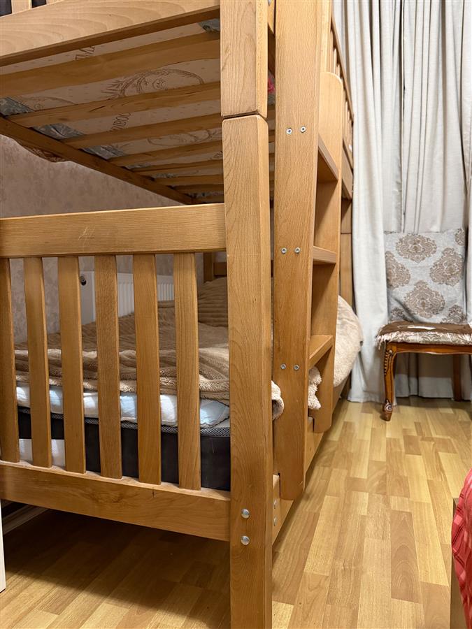 იყიდება ორსართულიანი ხის საწოლი, რომელიც 1წელია რაც შევიძინეთ. მოყვება მატრასებიც შესაძლებელია დაშლაც და გვერდი-გვერდ მიდგმაც. სათავსოები არ აქვს.