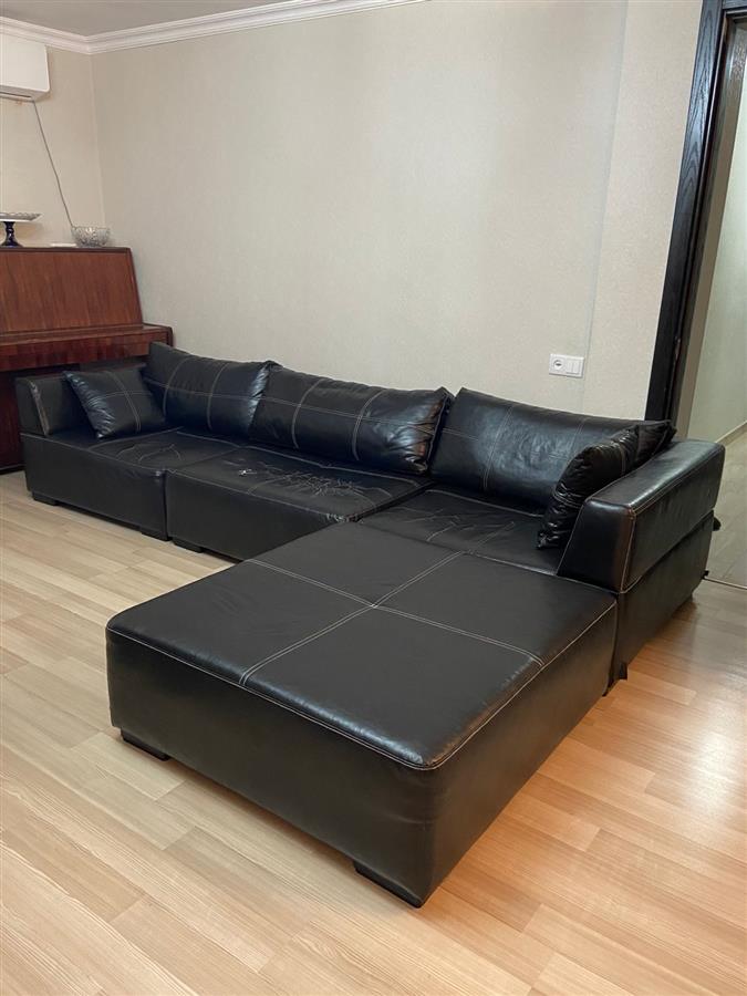 3 X 2 -ზე, შავი ფერის, ტყავის კუთხე (უგალოკი). აქვს მცირედი ზედაპირული დაზიანება. შედგება 4 ნაწილისგან, თითოეული მათგანი კვადრატული ფორმისაა და შესაძლებელია განლაგდეს თქვენი გემოვნების მიხედვით. ფასი 800 ლარი. ლოკაცია - საბურთალო. სართული მეორე.Show original