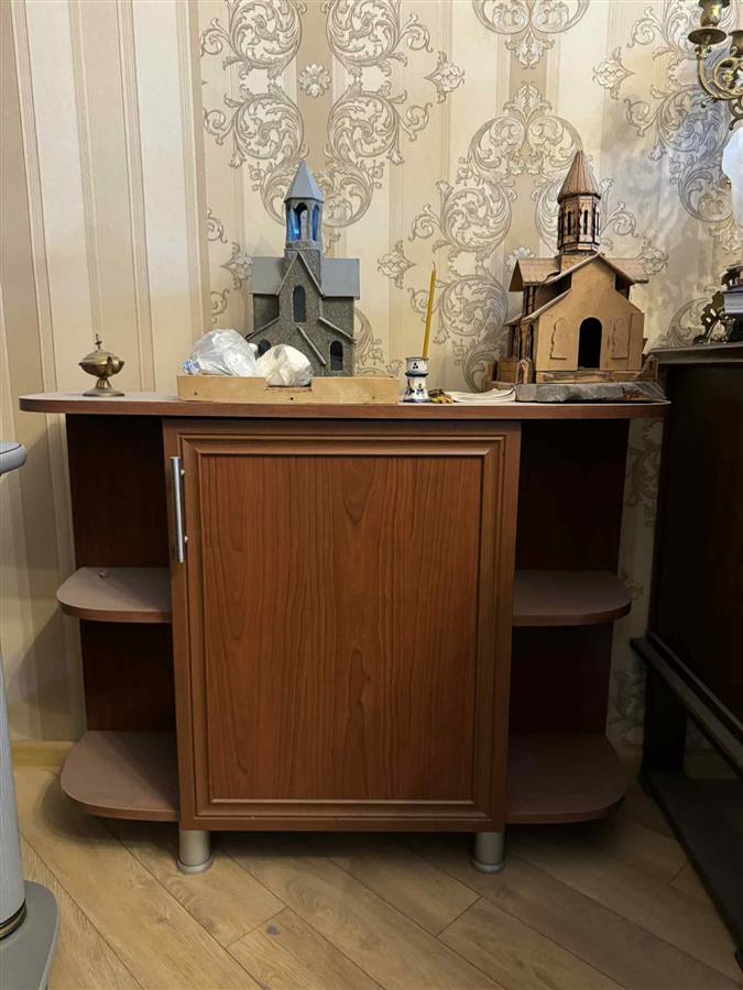 იყიდება შესასვლელი ოთახის კარადა, ტუმბო, კომოდი და სარკე, ძალიან კარგ მდგომარეობაში. 1500 ლ Show original