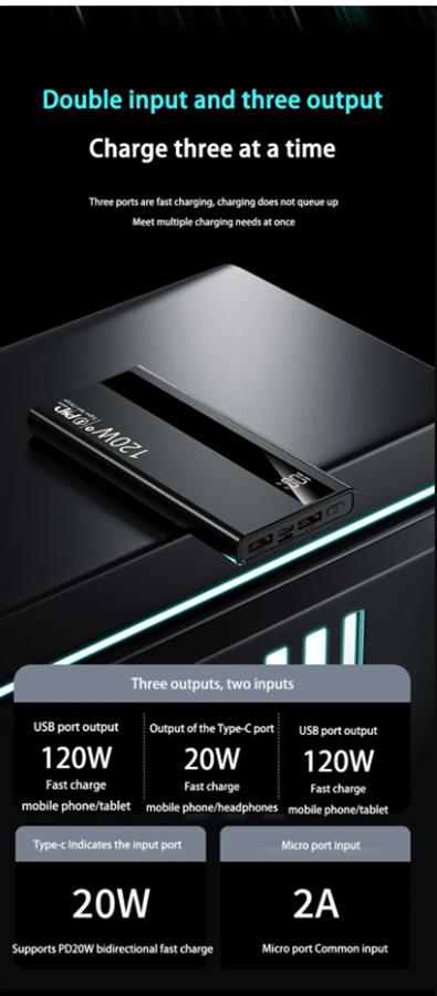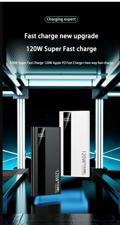 10000mAh , 20000mAh მაღალი ტევადობის PowerBank 120W სუპერ სწრაფი ფოვერ ბანკი