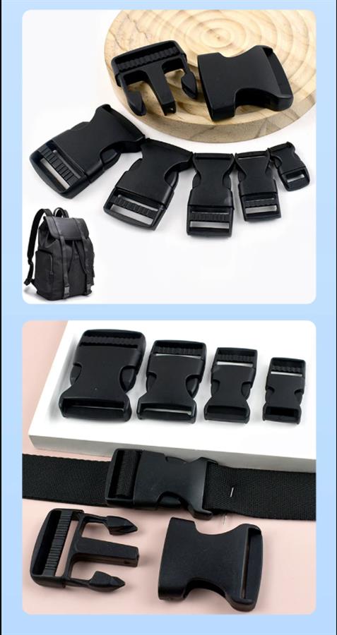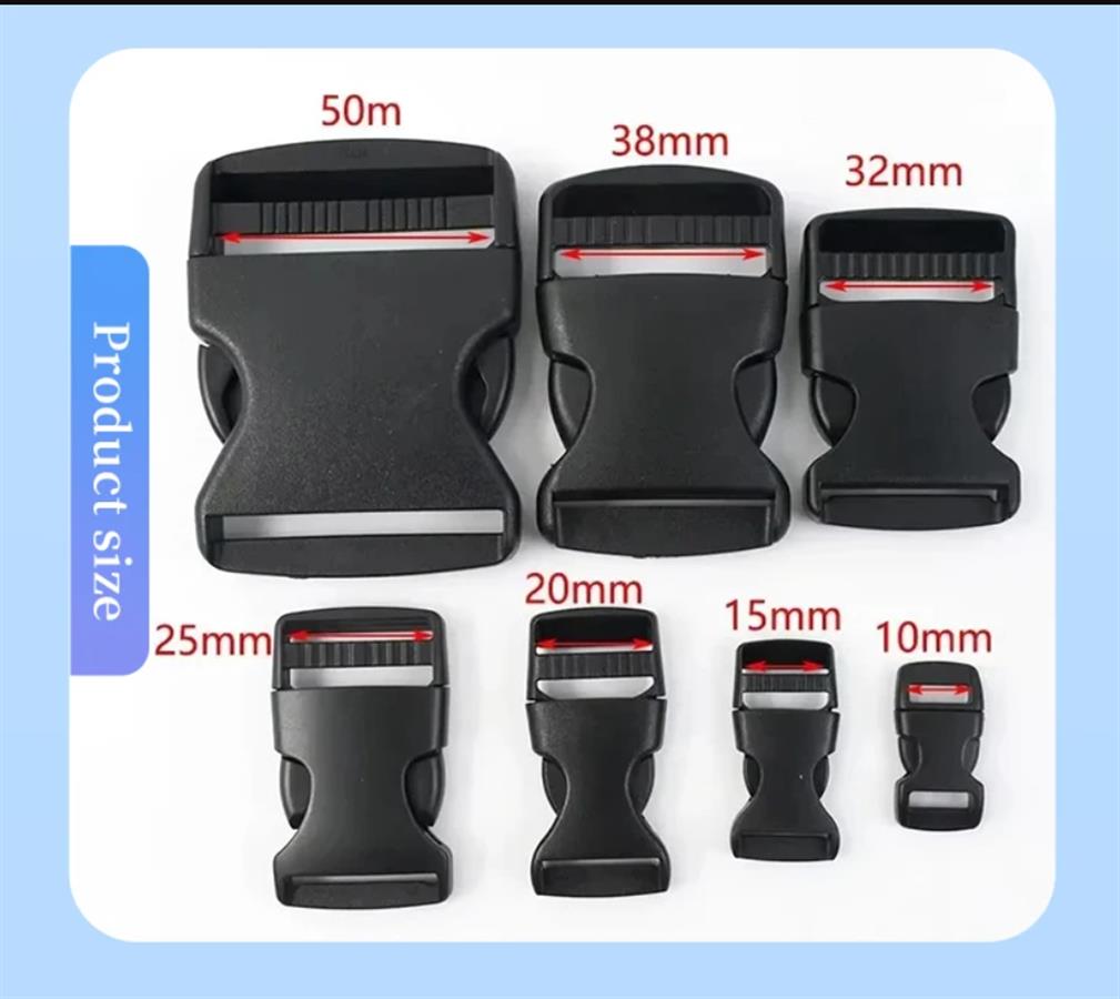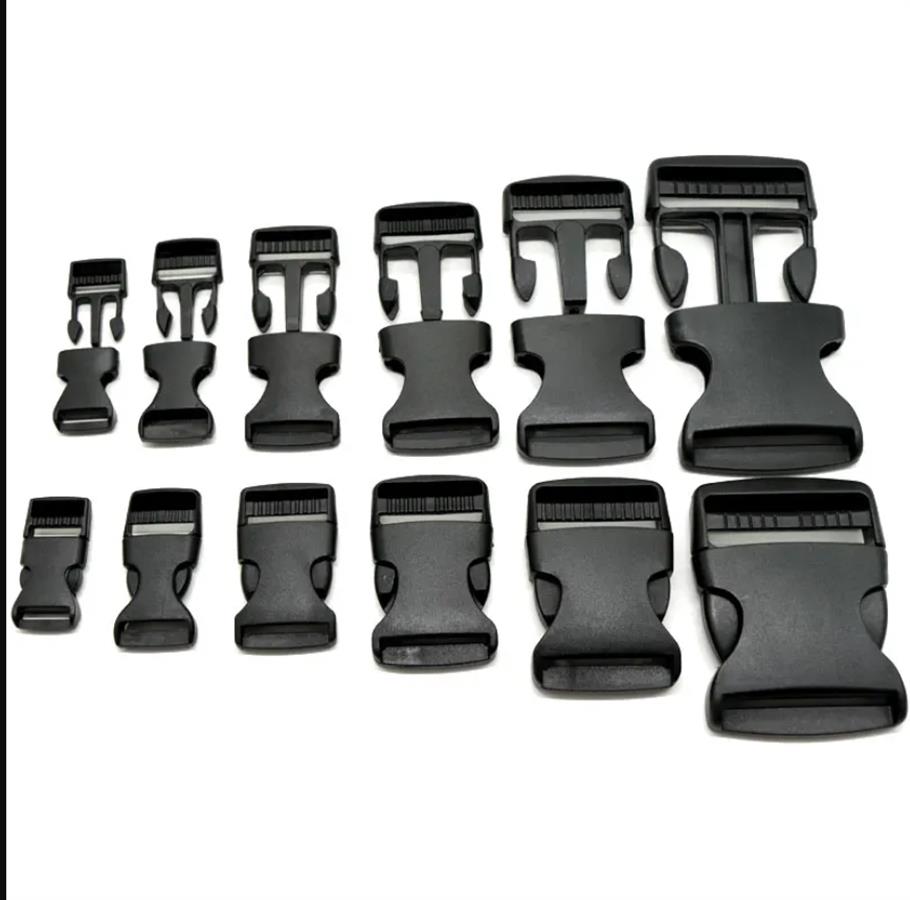 25ც კომპლექტი ჩანთის გვერდითი პლასტმასის ბალთები, 10-50 მმ ნეილონის ქსოვილის შესაკრავი