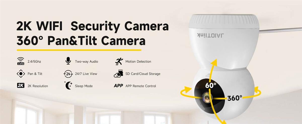 2K JAIOTLINK ბავშვის მონიტორი ტელეფონის აპლიკაციით, 360° პანორამირებადი შიდა კამერა