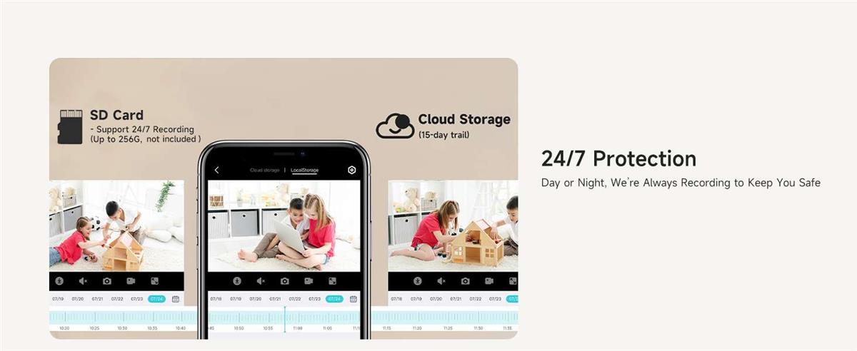 სტაბილური ორზოლიანი WiFi და მოქნილი ღრუბლოვანი/SD მეხსიერება: მხარს უჭერს 2.4GHz და 5GHz ორზოლიან Wi-Fi-ს გლუვი, შეფერხების გარეშე სტრიმინგისთვის. მოქნილი შენახვის ვარიანტები: ადგილობრივი SD ბარათი ან უსაფრთხო ღრუბლოვანი სარეზერვო ასლი. იდეალური შიდა კამერა სახლის, საბავშვო ბაღის, ბინის ან ოფისის უსაფრთხოებისთვის - 24/7 მონიტორინგი დისტანციური წვდომით.