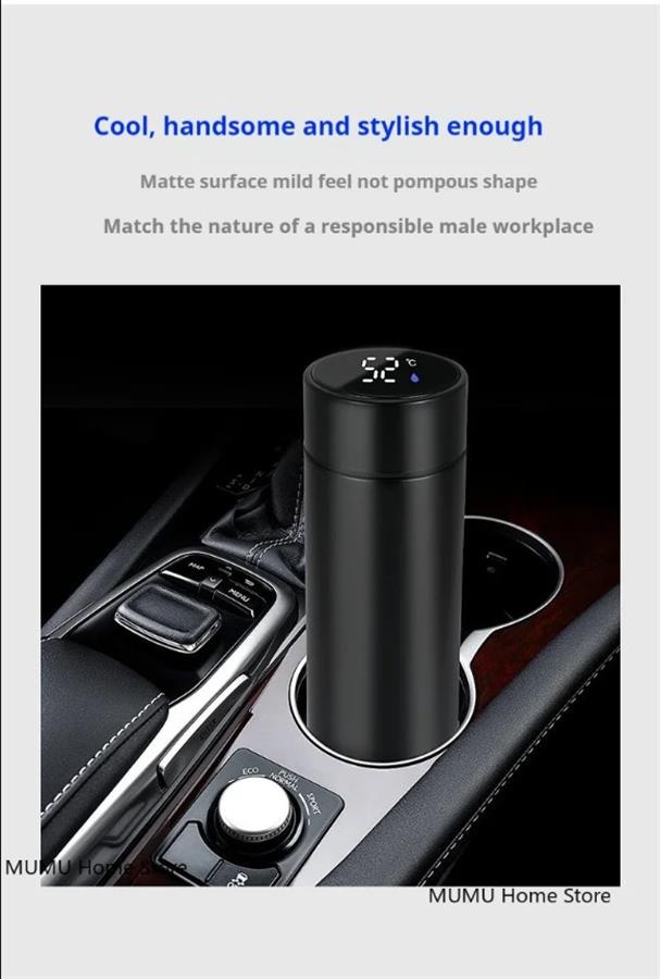 500 მლ ინტელექტუალური ტემპერატურის თერმოსი, სპორტული წყლის ჭიქა, ავტომობილის იზოლირებული ჭიქა, ინარჩუნებს სიცივეს და სითბოს, თერმული კათხა, ვაკუუმური ფლაკონები