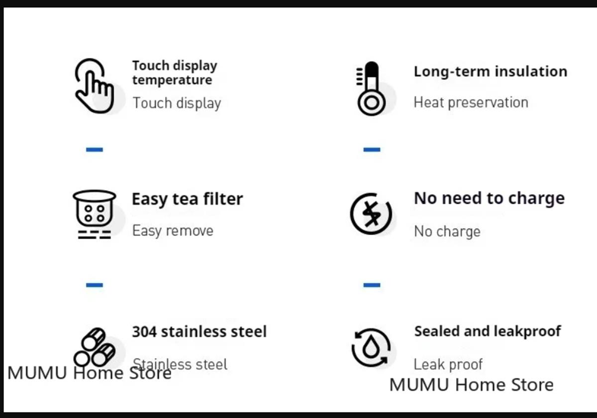 • უსაფრთხო მასალა: უჟანგავი ფოლადი. დამზადებულია მაღალი ხარისხის უჟანგავი ფოლადისგან, ეს თერმოსი გამძლე და ხანგრძლივი მოხმარებისაა, რაც უზრუნველყოფს, რომ მისი გამოყენება მრავალი წლის განმავლობაში შეგიძლიათ.