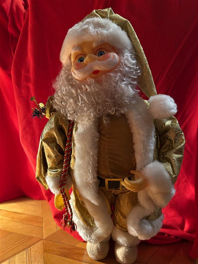70 სმ მუსიკალური სანტა კლაუსი თოვლის ბაბუა. ზურგიდან იქოქება და მუსიკა გამოდის. ზურგზე ხურჯინი ჩამიკიდებული. ნდებარეობა მეტრო წერეთელი Show original