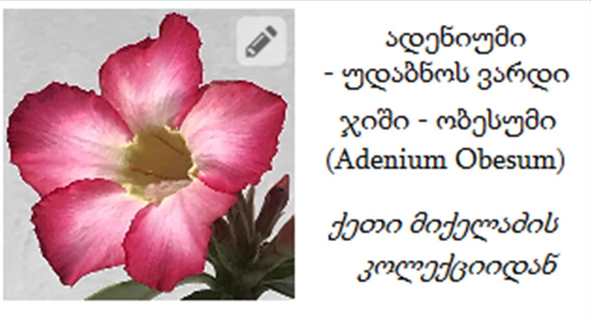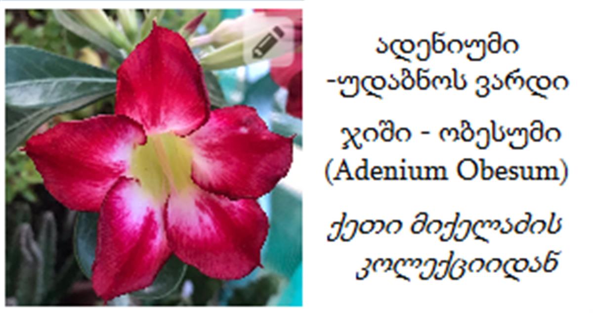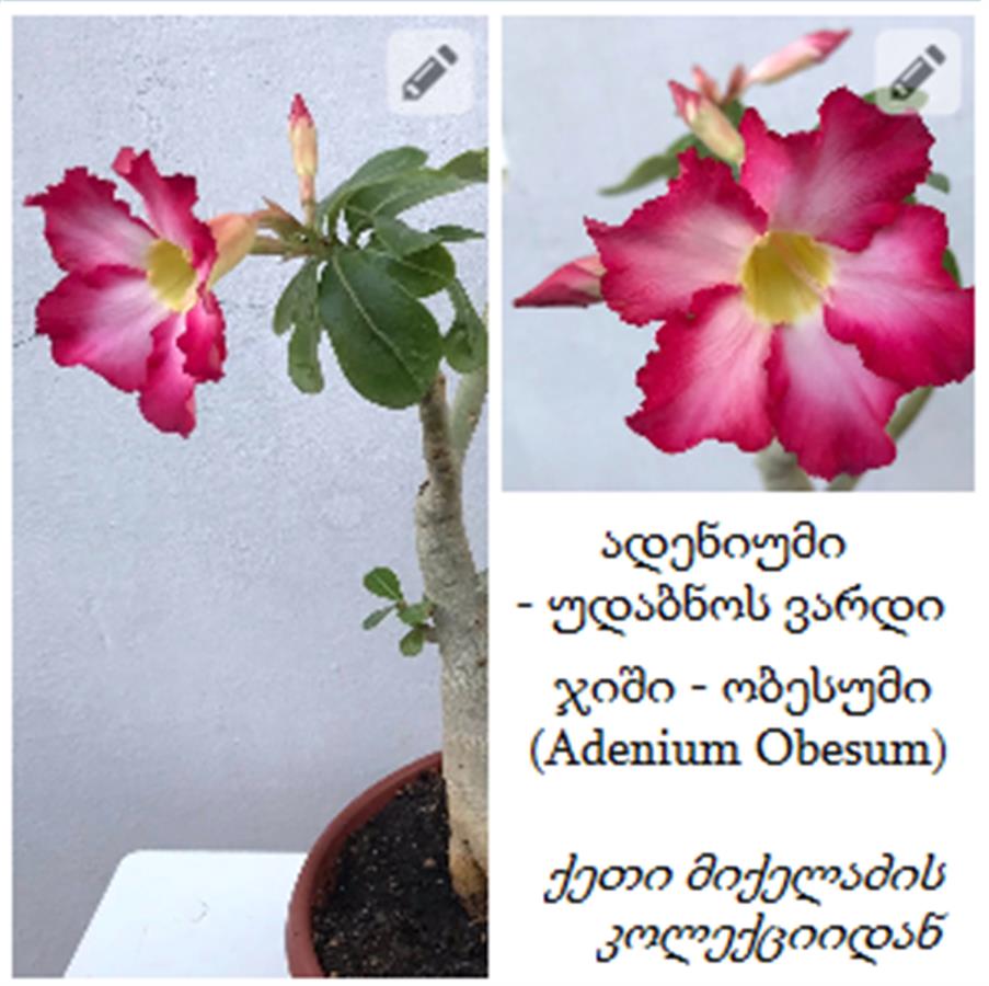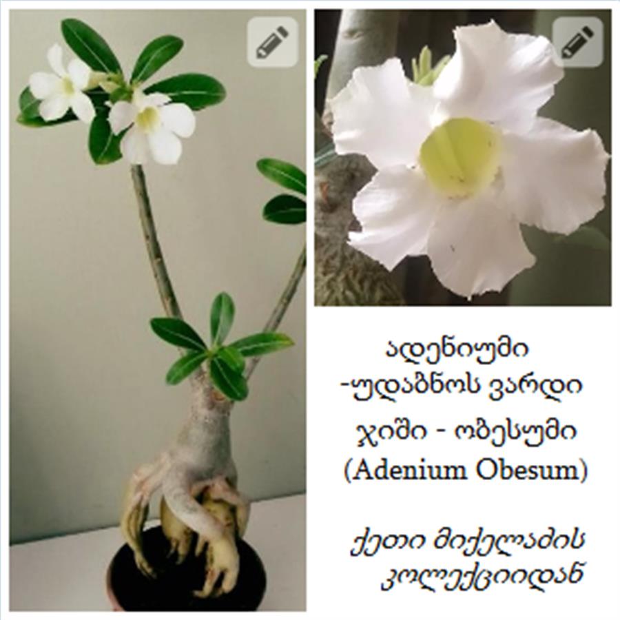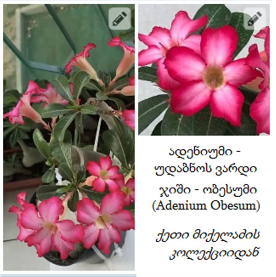 იყიდება სხვადასხვა ფერის ადენიუმის [უდაბნოს ვარდის] თესლი ჩემი კოლექციიდან, პაკეტში არის 10 მარცვალი, პაკეტის ფასი - 5 ლარია, შესაძლებელია ფერების კომბინაციის შერჩევაც.