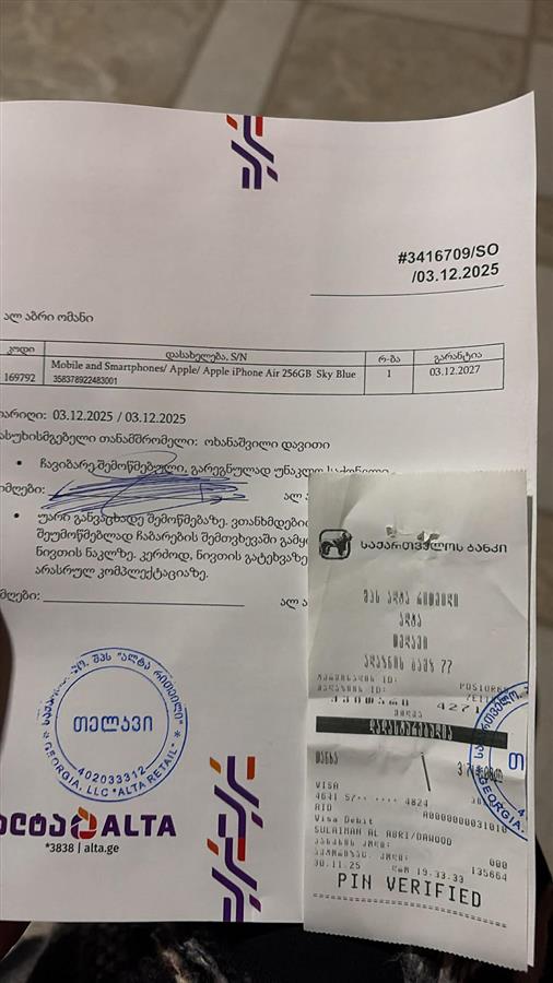 ტელეფონი ნაყიდია ალტაში. არის გაუხსნელი. ტელეფონი შეძენილია 3700 ლარად და იყიდება 3000 ლარად.