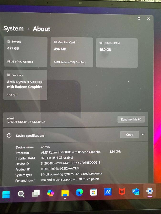 💻 პროცესორი: AMD Ryzen 9 5900HX (8 ბირთვი / 16 ნაკადი) - მძლავრი ჩიპი მუშაობისა და შემოქმედებისთვის