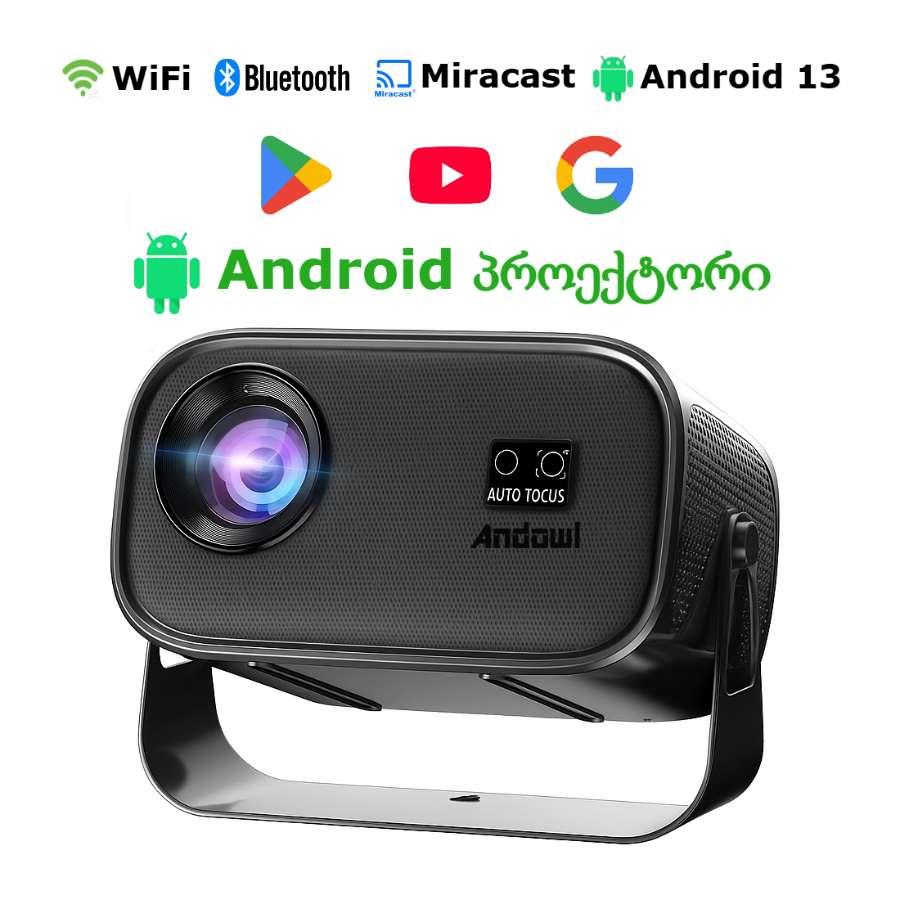 პროექტორი andowl YG500 ანდროიდი youtobe, google, play store, miracast, bluetooth, WiFi უფასო მიწოდება თბილისი რუსთავი იმავე ან მომდევნო დღეს, რეგიონში 2-4 სამუშაო დღეში ბრენდი: andowl მოდელი: YG500 ჩვენების ტიპი: LCD ავტო ფოკუსი: კი miracast ეკრანის გაზიარება: კი ოპტიკური რეზოლუცია: 4K, 1920x1080 fullHD რეზოლუციის მხარდაჭერა: 4K, 1920x1080 full HD ნათურა: LED სიკაშკაშე: 220 ANSI ნათურის სიცოცხლისუნარიანობა: ≈ 30 000 სთ. კონტრასტი: 1000:1-2000:1 ეკრანის თანაფარდობა: 16:9 ინტერფეისი: HDMI, USB, AV, audio out ვიდეო ფორმატი: MP4, AVI, WMV, MKV, VOB, RMVB, RM. MOV... აუდიო ფორმატი: MP3 , WMA , AAC სურათები: JPEG , BMP , PNG სიმძლავრე: 55W ზომა: 19.0 სმ x 11.0 სმ x 12.0 სმ წონა: ≈ 1.1 კგ. სხვა მახასიათებლები: დაშორების დისტანცია: 1.2 მ - 3.8 მ ჩვენების ზომა: 60"-110" ნაკრებში შედის: პროექტორი Andowl YG500 სამართავი პულტი HDMI კაბელი სამაგრი: კედელზე-ჭერზე tags: პროექტორი, მინი პროექტორი, proeqtori, mini proeqtori, პროექტორები, led პროექტორები, proeqtorebi, პროეკტორი, ვიდეო პროეკტორი, კინო პროეკტორი, პროექტორის ეკრანები, პროეკტორის ეკრანი, proeqtoris ekrani, Andowl YG500
