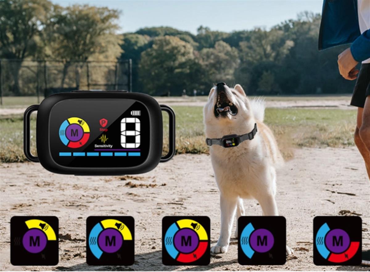ჭკვიანი ავტომატური ყეფის საწინააღმდეგო ძაღლის საყელო HD ციფრული დისპლეით IP67