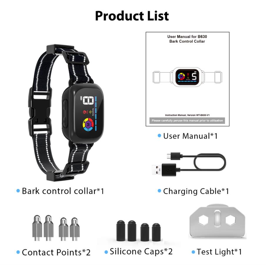 საყელო გამოდის ძაღლის ყეფით, საყელოში ჩაშენებული ხმის სენსორი, ფუნქციები ჩნდება მაშინ, როდესაც ხმის სენსორი იღებს ყეფს.