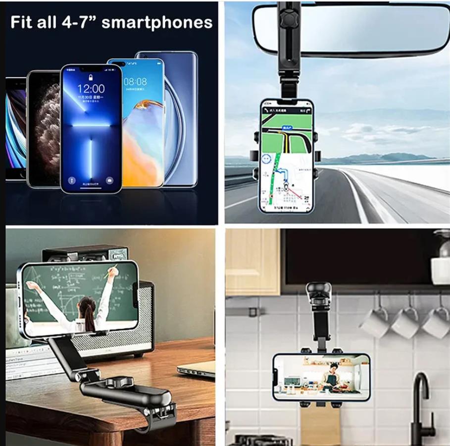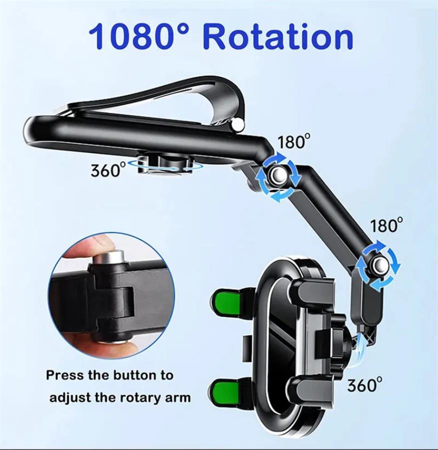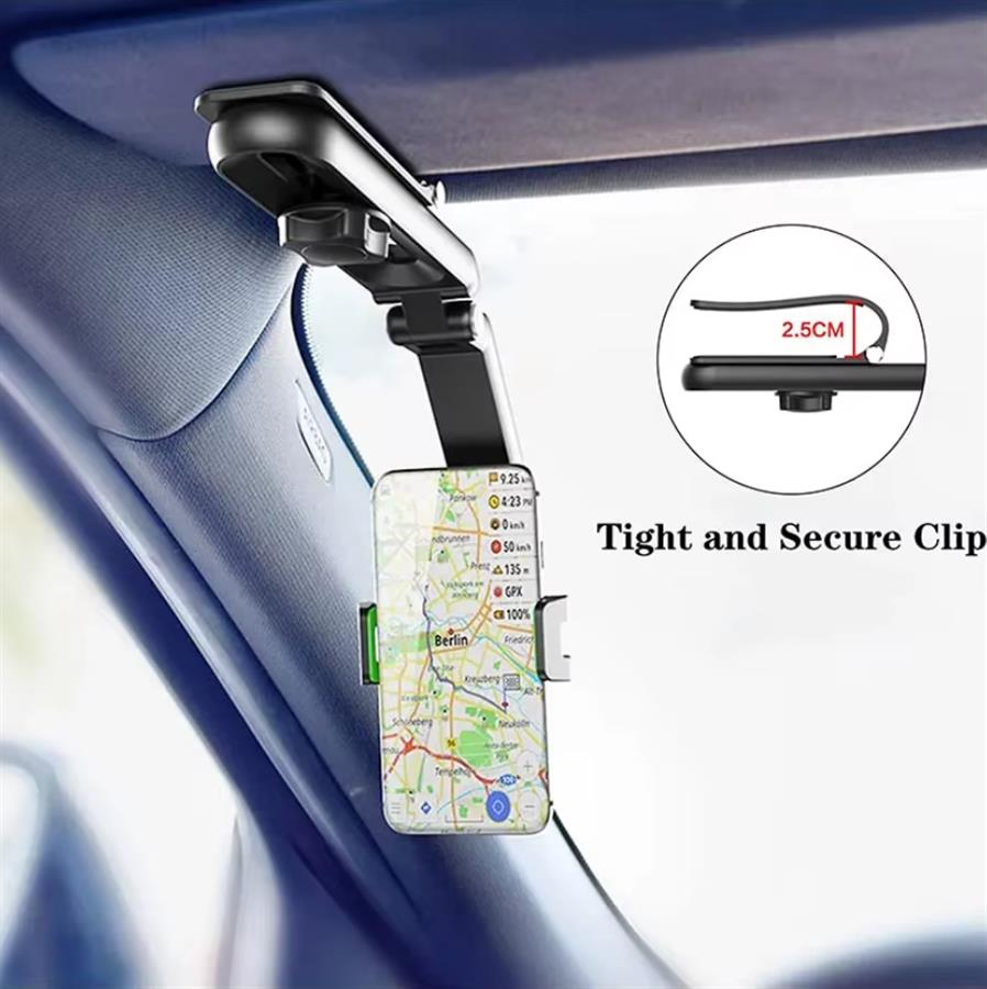 უნივერსალური ავტომობილის ტელეფონის დამჭერი მზისგან დამცავი მრავალკუთხოვანი მბრუნავი ავტომობილის ტელეფონის სამაგრი ხელების გარეშე ავტომობილისთვის