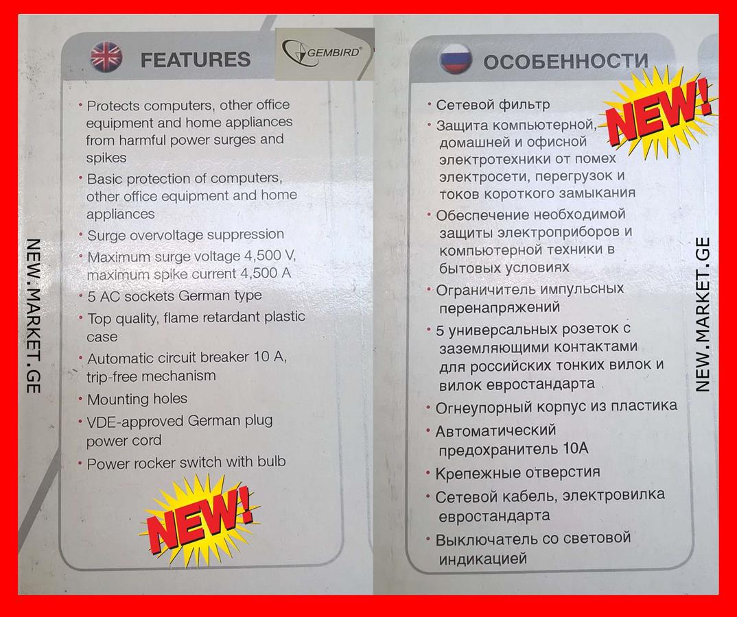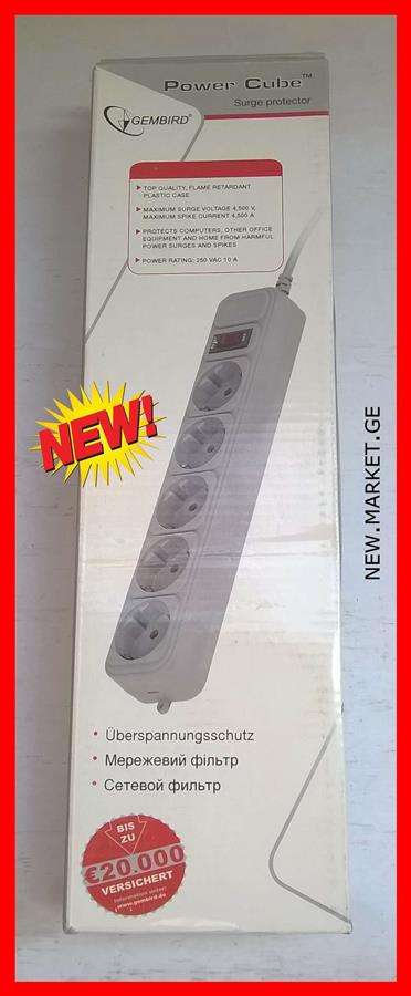 იყიდება მაღალი ხარისხის ელექტროდამაგრძელებელი დენის ფილტრი Gembird surge protector ელექტრული ქსელის ფილტრი ელექტრო დამაგრძელებელი უზრუნველყოფს კომპიუტერული აღჭურვილობისა და სამომხმარებლო ელექტრონიკის დაცვას. მოდელი: GEMBIRD, ახალი (უხმარი) ორიგინალი Gembird ფირმის ელექტროდამაგრძელებელი / ელექტრო დამაგრძელებელი იცავს კომპიუტერებს და ელექტრულ და ელექტრონულ მოწყობილობებს ძაბვის უეცარი ცვლილებებისგან და იმპულსური ხმაურისგან - ორიგინალი ელექტროდამაგრძელებლები ორიგინალი ელექტრო დამაგრძელებლები.