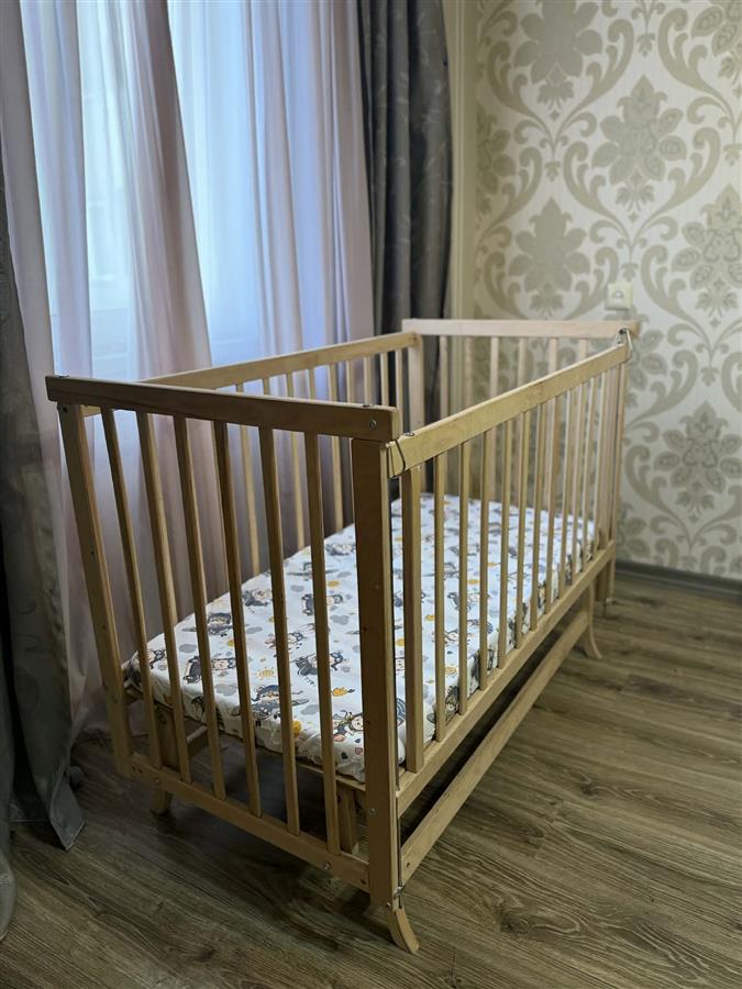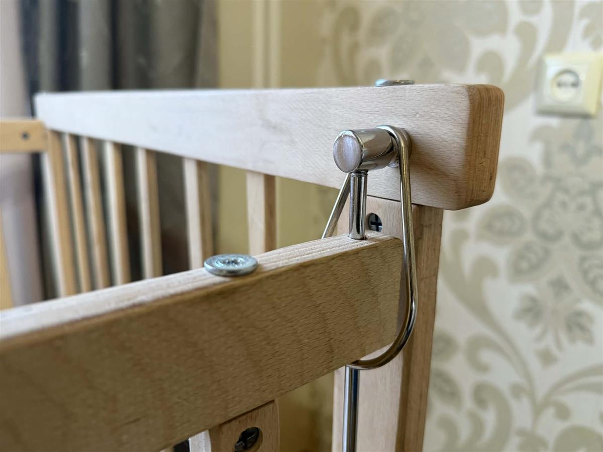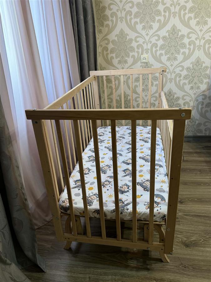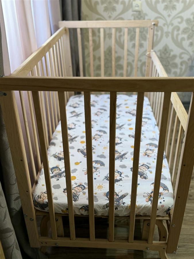 ეხსნება ერთი მხარე და შესაძლებელია დედის საწოლთან მისადგამად გამოყენება.ლეიბი საჩუქრად.