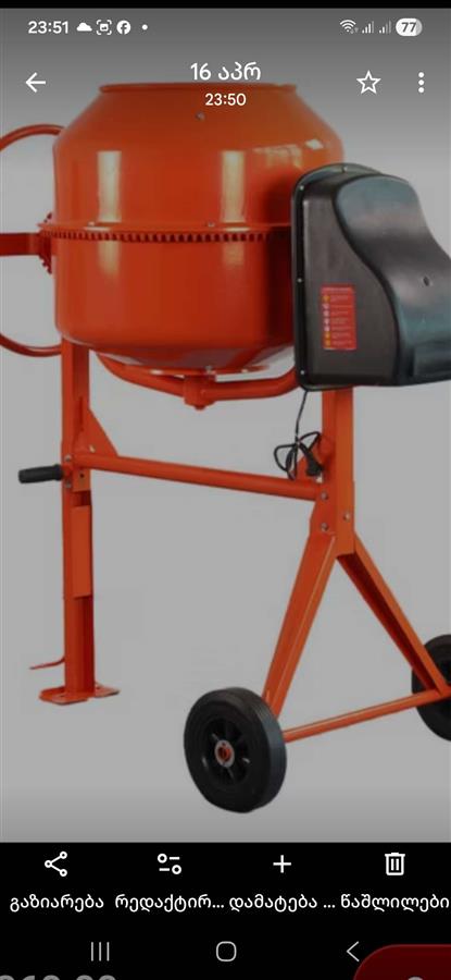 იყიდება ბეტონ მიშალკა POLSKA 1800W 260L პოლონური. ახალი შეფუთულ მდგომარეობაში მოყვება საგარანტიო 2წლ. არის საკმაოდ ძლიერი და გამომდგარი ბრენდი. სურათი სხვაა 260ლ ტევადობაა ბარაბანის Show original