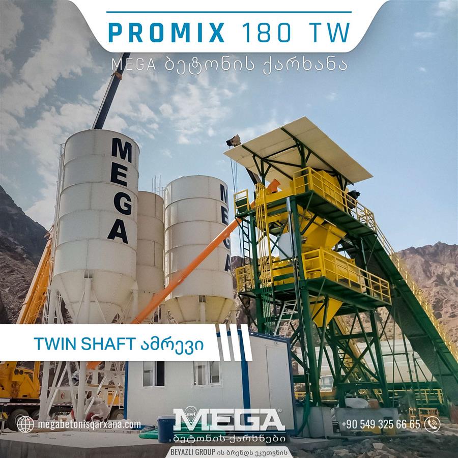 იყიდება MEGA-ის მარკის საათში 180 მ³ წარმოების სტაციონალური ბეტონის ქარხანა. იტალიური ბრენდის უმაღლესი ხარისხის TWIN SHAFT მიქსერი / მოცულობა 3 მ³. SCADA კომპიუტერული პროგრამა.