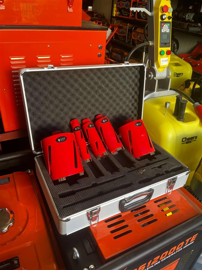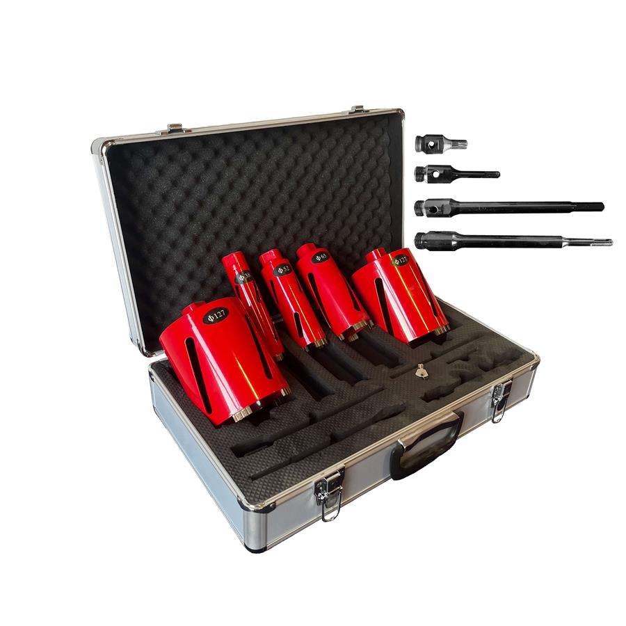 ნაკრები მოიცავს სხვადასხვა (38; 52;65;127) დიამეტრის საბურღ პირებს, რომლებიც განკუთვნილია ბეტონის, აგურისა და ქვის ზედაპირების ზუსტად დასამუშავებლად. თითოეული საბურღი დამზადებულია ვაკუუმური შედუღების ტექნოლოგიით, რაც უზრუნველყოფს მათ გამძლეობას, მაღალი ტემპერატურის მიმართ მდგრადობას და ხანგრძლივ ექსპლუატაციას.
