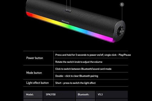კავშირი: Bluetooth 5.0, USB, Micro TF ბარათი და AUX მხარდაჭერა. თავსებადია სმარტფონებთან, პლანშეტებთან და ტელევიზორთან.