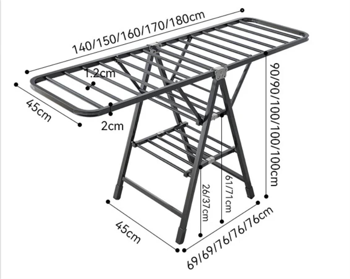 სახლის შიდა დასაკეცი საშრობი ფოლადის ტანსაცმლის ბორბლებიანი საშრობი 1.4m