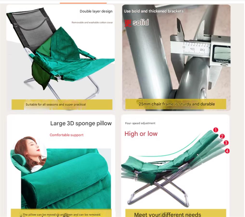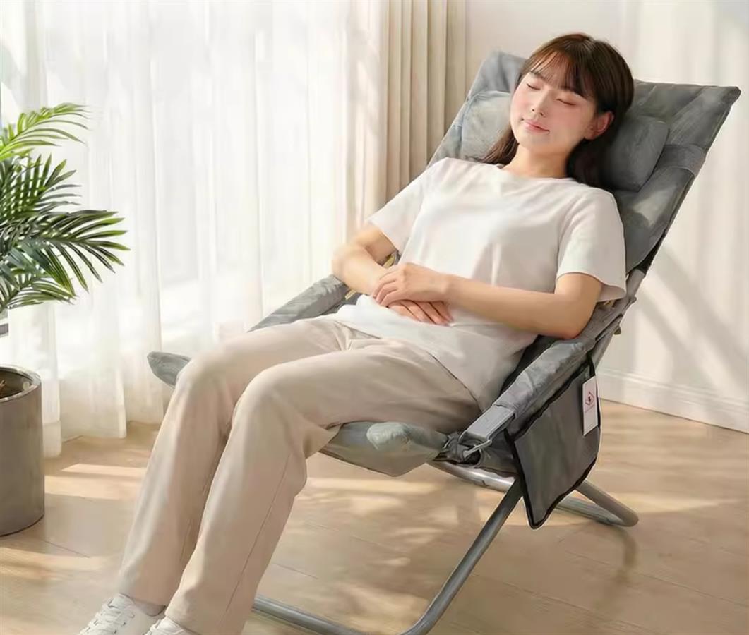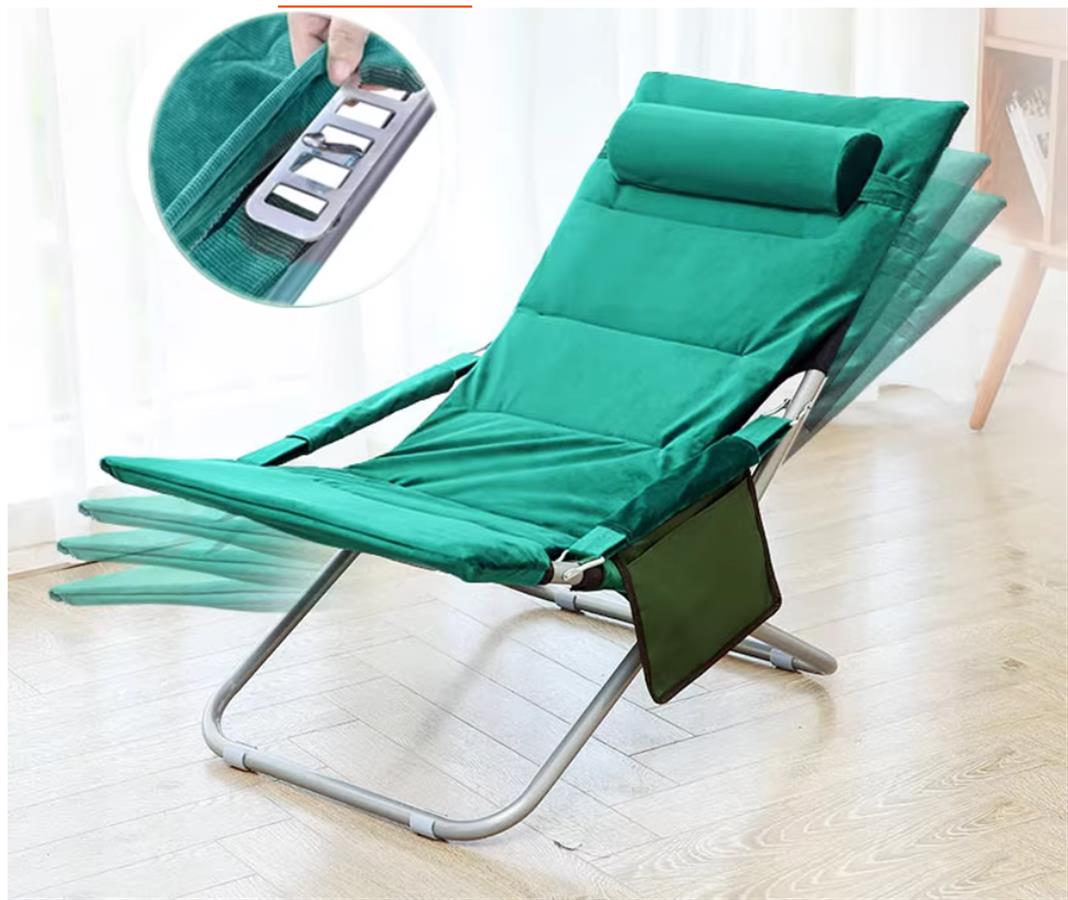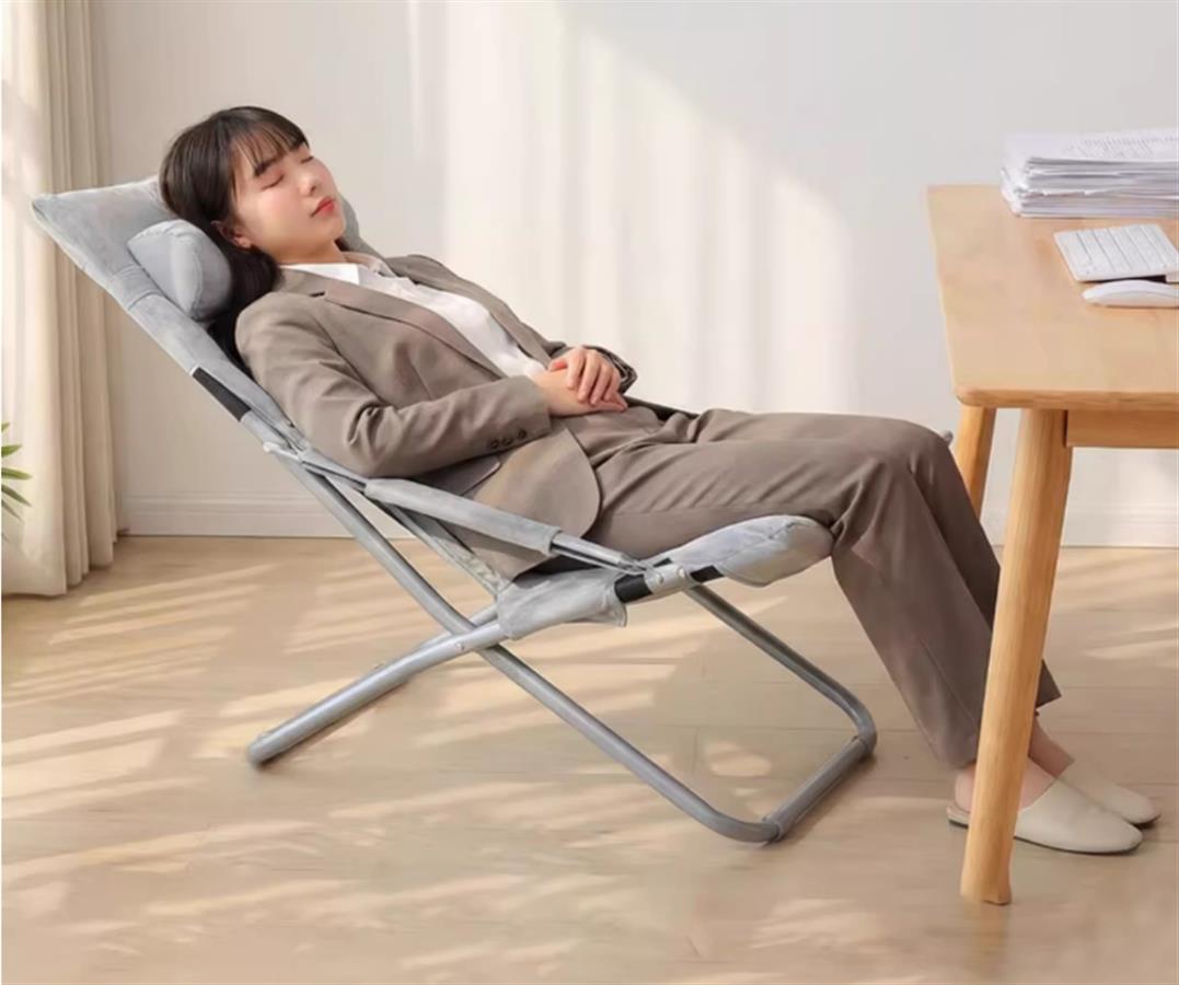 დასაკეცი სავარძელი, სადილის შესვენებისა და ძილისთვის, ახალი პორტატული ოფისის/აივნის/სახლის გამოყენებისთვის, დასასვენებელი მზის სავარძელი საზურგით, ზარმაცი სკამი.