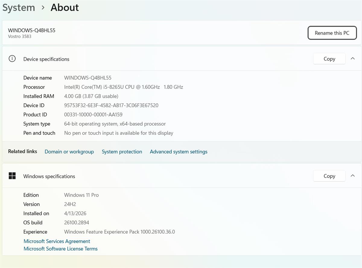 CPU – i5 – 8265U 3,9 Ghz, BGA-1528, RAM – 4 gb DDR4, SSD – 256 gb, Wi-Fi, LAN Gigabyte, ვიდეო - ინტეგრირებული, ჩაწერილია Windows 11. აკუმულატორი კარგია, ფასი - 350 ლარი.