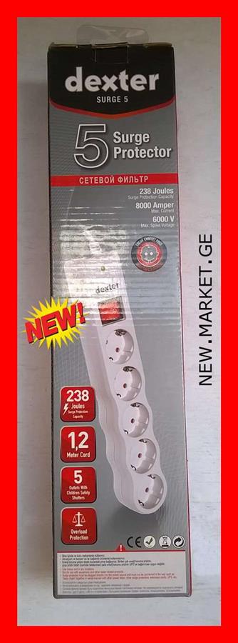 იყიდება მაღალი ხარისხის ელექტროდამაგრძელებელი დენის ფილტრი Dexter Surge5 surge protector ელექტრული ქსელის ფილტრი ელექტრო დამაგრძელებელი უზრუნველყოფს კომპიუტერული აღჭურვილობისა და სამომხმარებლო ელექტრონიკის დაცვას. მოდელი: Dexter Surge5, ახალი (უხმარი) ორიგინალი Dexter ფირმის ელექტროდამაგრძელებელი / ელექტრო დამაგრძელებელი იცავს კომპიუტერებს და ელექტრულ და ელექტრონულ მოწყობილობებს ძაბვის უეცარი ცვლილებებისგან და იმპულსური ხმაურისგან - ორიგინალი ელექტროდამაგრძელებლები ორიგინალი ელექტრო დამაგრძელებლები.