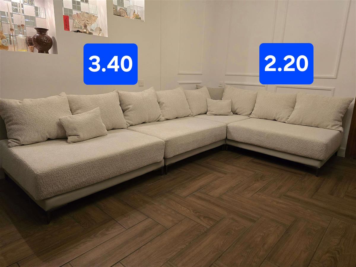 ოთხი სექციისგან შემდგარი, ახალი, კომფორტული, ორთოპედიული კუთხის დივანი. ტყავი / ბუკლე სიგრძე 340 სმ სიგანი 220 სმ სიღრმე 92 სმ სიმაღლე 69 სმ. Show original