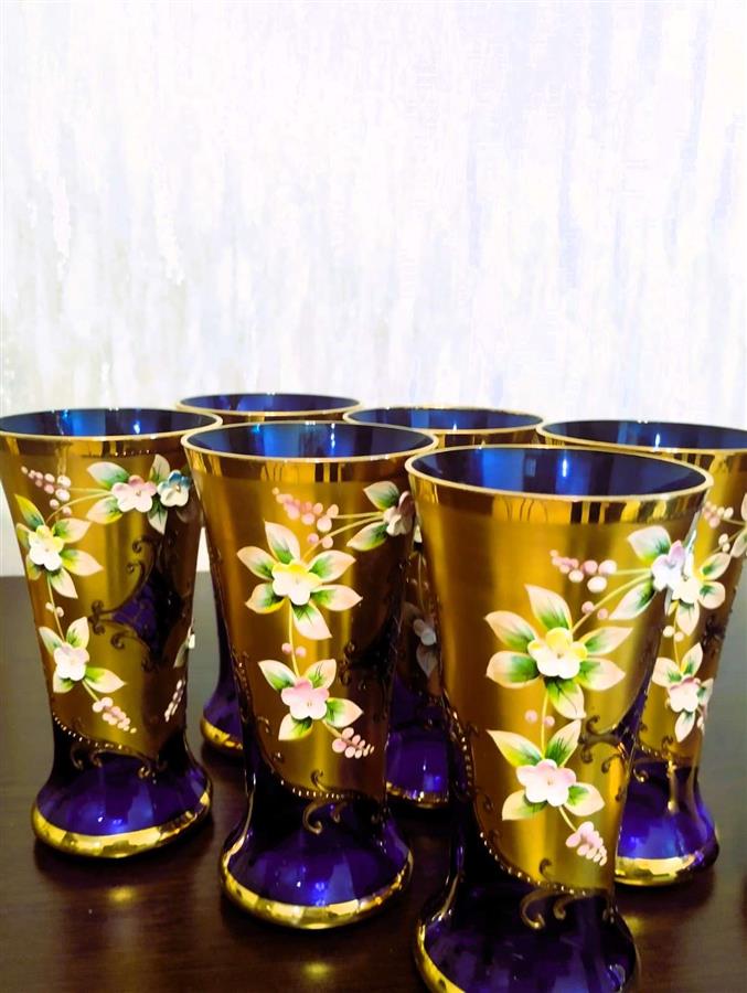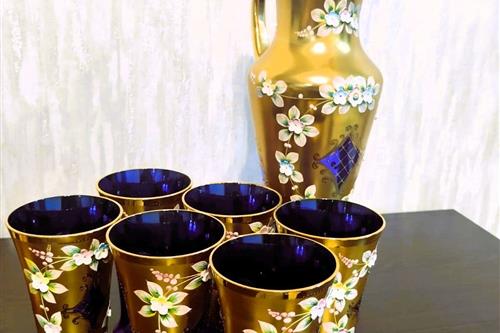 აღწერა: იყიდება ჩეხოსლოვაკიური წარმოების ბოჰემური შუშის (Bohemia) საკოლექციო ნაკრები. კომპლექტში შედის მაღალი გრაფინი და 6 ჭიქა. დამზადებულია მუქი ლურჯი (კობალტისფერი) მინისგან, რომელიც დაფარულია 24-კარატიანი ოქროთი. გაფორმებულია "როკოკოს" სტილის მოცულობითი ხელით ნაძერწი ყვავილებით. ნაკრები არის იდეალურ მდგომარეობაში, ყოველგვარი დაზიანებისა და ოქროს ცვეთის გარეშე. საუკეთესო შენაძენია ინტერიერის დეკორისა თუ საჩუქრისთვის Show original