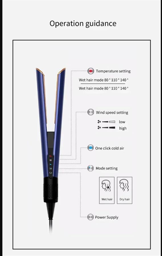 2-1-ში პროფესიონალური თმის გასასწორებელი და თმის საშრობი, გაცხელებადი თმის გასასწორებელი უთო, უარყოფითი იონების უთო, ხანგრძლივი მოქმედების სტილის ინსტრუმენტი Dys0n