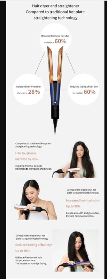 Dys0n 2-1-ში პროფესიონალური თმის გასასწორებელი და თმის საშრობი, უთო (რეპლიკა)