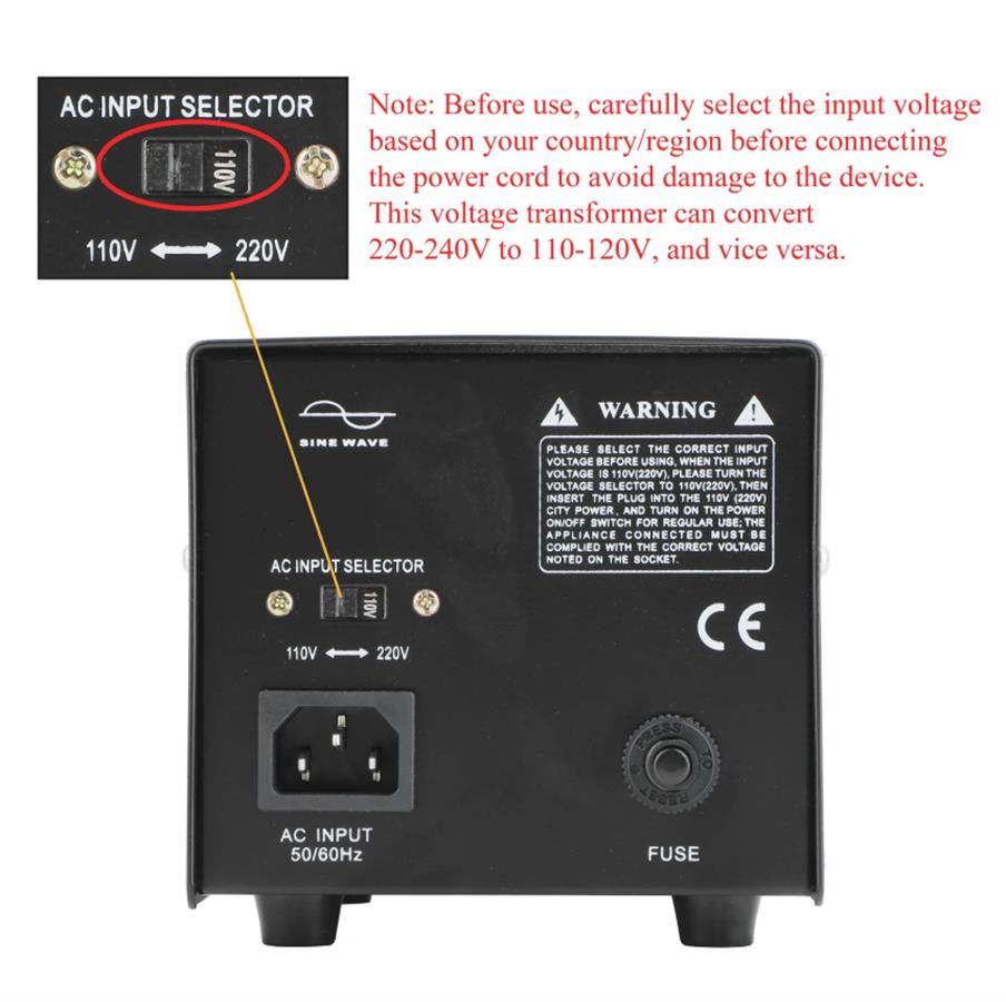 ძაბვის ტრანსფორმატორი AC 110V-დან 220V-მდე ან AC 220V-დან 110V-მდე აწევის და დაწევის გადამყვანი 1000W საყოფაცხოვრებო ტექნიკისთვის