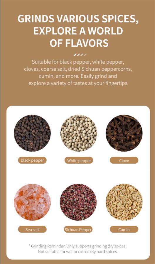განახლებული დიდი ტევადობა: ჩვენი წიწაკისა და მარილის საფქვავები იტევს 110 მლ-მდე / 3.72 სუნელს, ხოლო დიდი ტევადობა ნიშნავს, რომ არ დაგჭირდებათ მისი ხშირად შევსება, რაც აკმაყოფილებს როგორც ინდივიდების, ასევე დიდი ოჯახების საჭიროებებს.