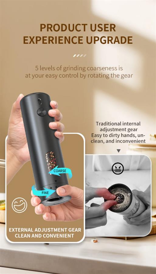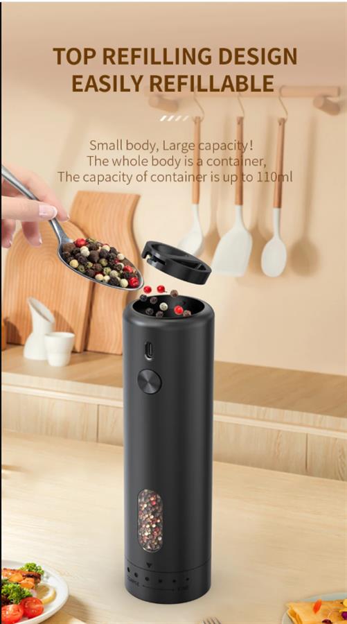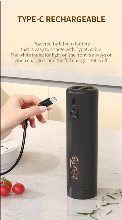 ელექტრო საფქვავი წიწაკის, მარილის, პილპილის USB-ით დატენვადი