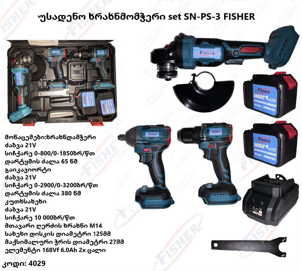 ელექტრო ხრახნდამჭერი კომპლექტი,კომბო FISHER SN-PS-3