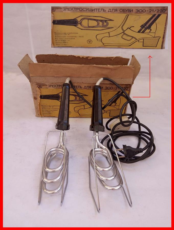 იყიდება აბსოლუტურად ახალი მაღალი ხარისხის ვინტაჟური რარტეტული ორიგინალი საბჭოური ფეხსაცმლის ელექტრო საშრობი. საბჭოთა კავშირის დროს წარმოებული / электросушитель для обуви Сделано в СССР / electric shoe dryer Made in USSR (Soviet Union / SU). ფეხსაცმლის ელექტრო საშრობი განკუთვნილია სველი და ნესტიანი ფეხსაცმლის გასაშრობად სახლის პირობებში, მთელი წლის განმავლობაში. ფეხსაცმელში ცირკულირებადი თბილი ჰაერი აშრობს ფეხსაცმელს კონვექციით. გაშრობის შემდეგ, ამოიღეთ გამათბობლები ფეხსაცმლიდან და გაწმინდეთ მშრალი რბილი ქსოვილით. ფეხსაცმლის ელექტრო საშრობი გამოყენება ასევე შესაძლებელია შალის წინდების გასაშრობად. მოთავსებულია ორიგინალ ქარხნულ შეფუთვაში / ყუთში. საბჭოთა წარმოების მაღალი ხარისხის ნიშანი. სიმძლავრე: 21 ვატი. ვინტაჟი, რარიტეტი. იხილეთ სურათი.