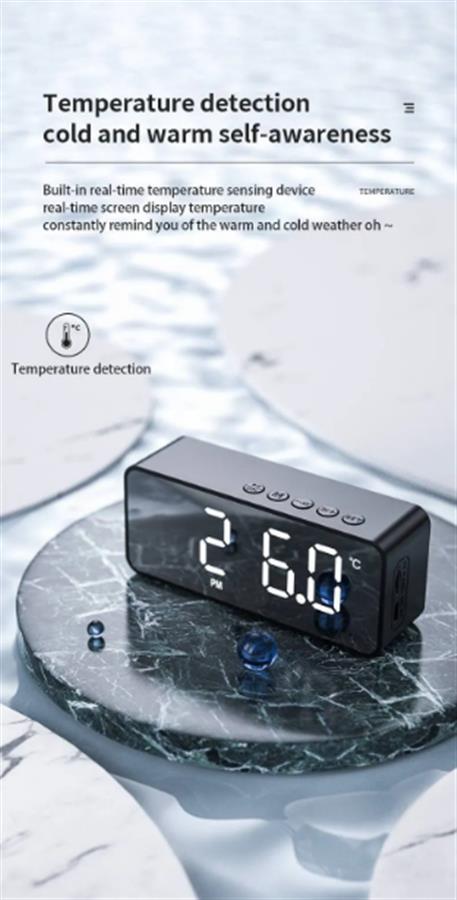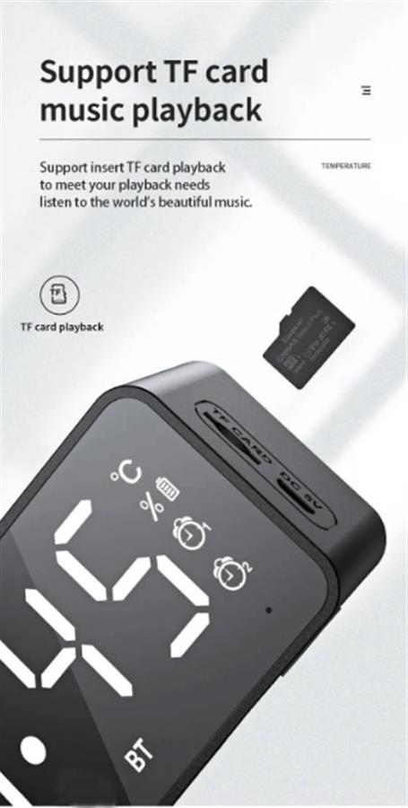 G50 უსადენო Bluetooth დინამიკი FM რადიოთი, ტემპერატურის საზომით, სდ ბარათის მხარდაჭერით.