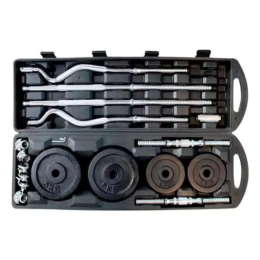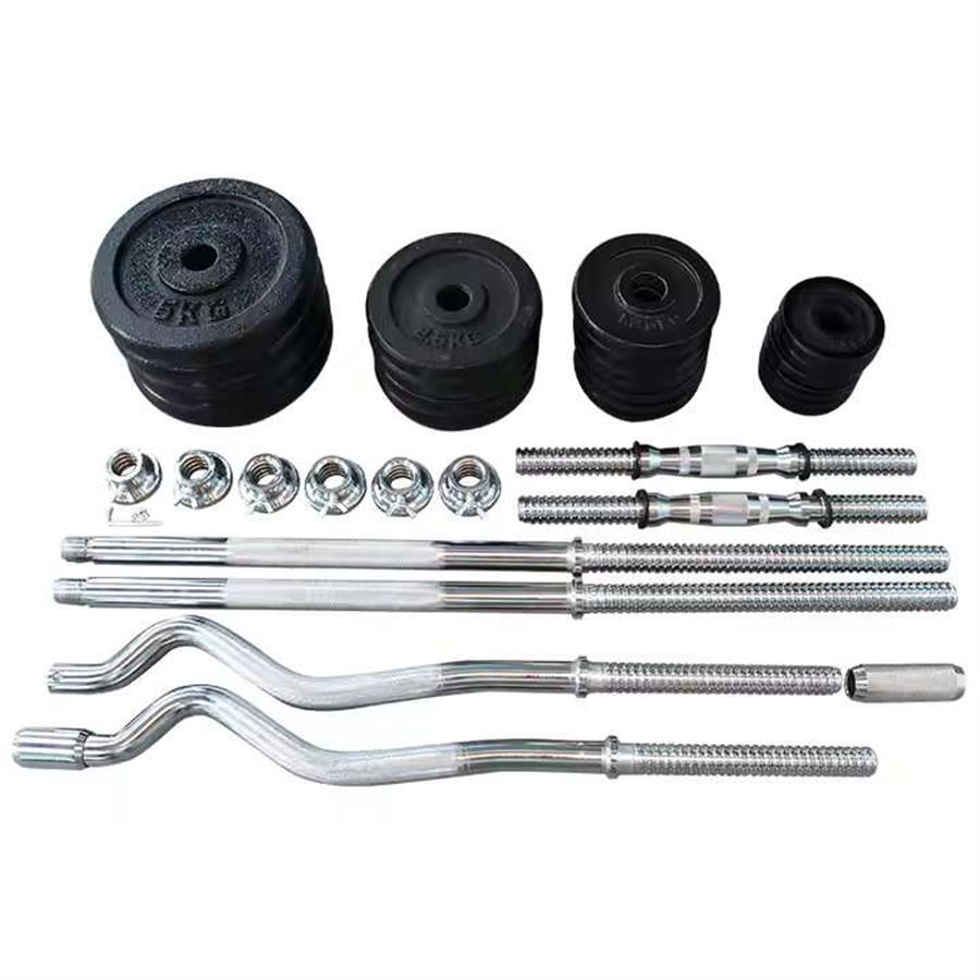 იწყობა 2х20კგ ან 1х26,5კგ ჰანტელი და 45,5კგ შტანგა