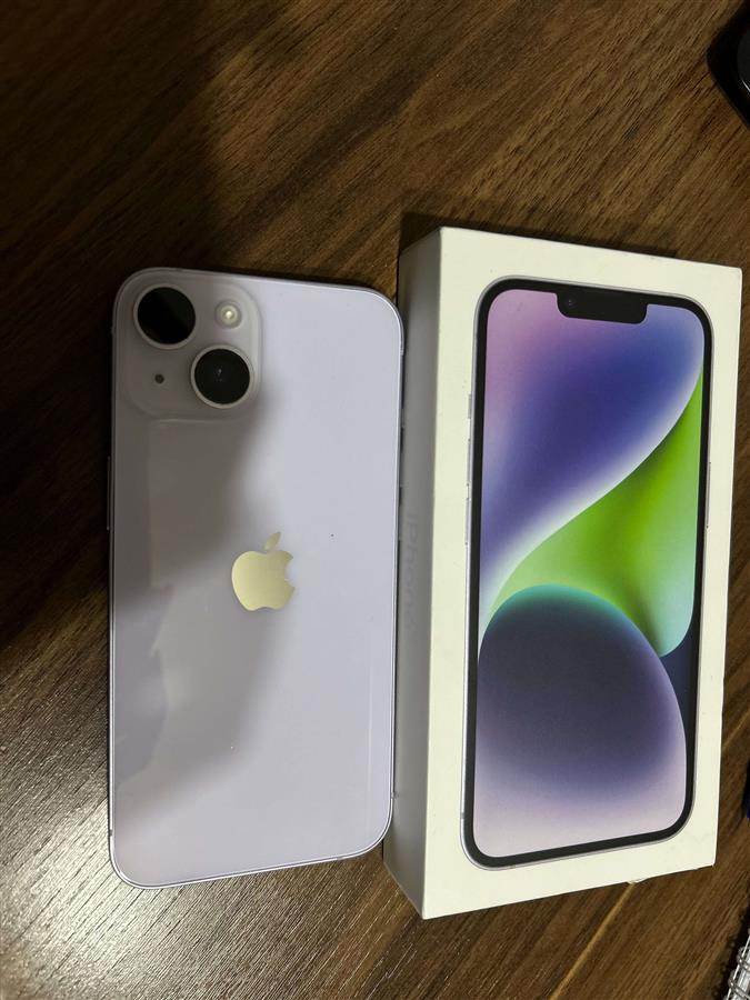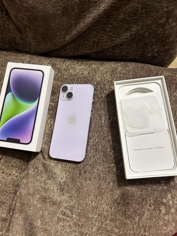 IPHONE 14 PURPLE 128GB/78 BT უნაკაწრო, გაუხსნელი,ყუთით და ქეისით.