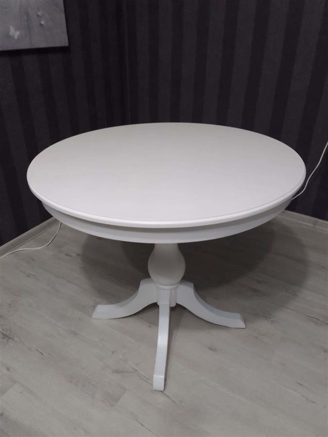 იყიდება მისაღები ოთახის თეთრი მაგიდა მრგვალი, ადგილობრივი წარმოების, 90 სმ დიაგონალით, მეორადი ახალივით Show original