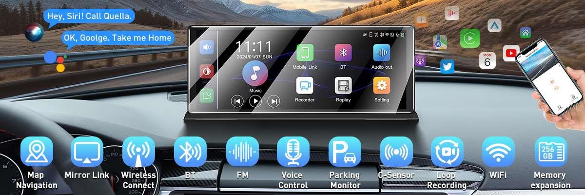 Gravity Sensor, Parking Monitoring, Recorder Function, WiFI, Wireless Android Auto, Wireless Carplay