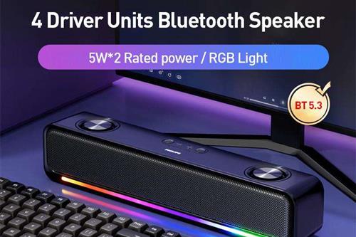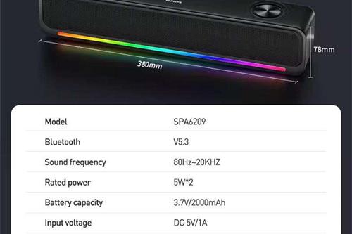 RGB განათება: დინამიკის წინა პანელი აღჭურვილია ფერადი განათებით, რომელიც მუსიკის რიტმს ერგება.