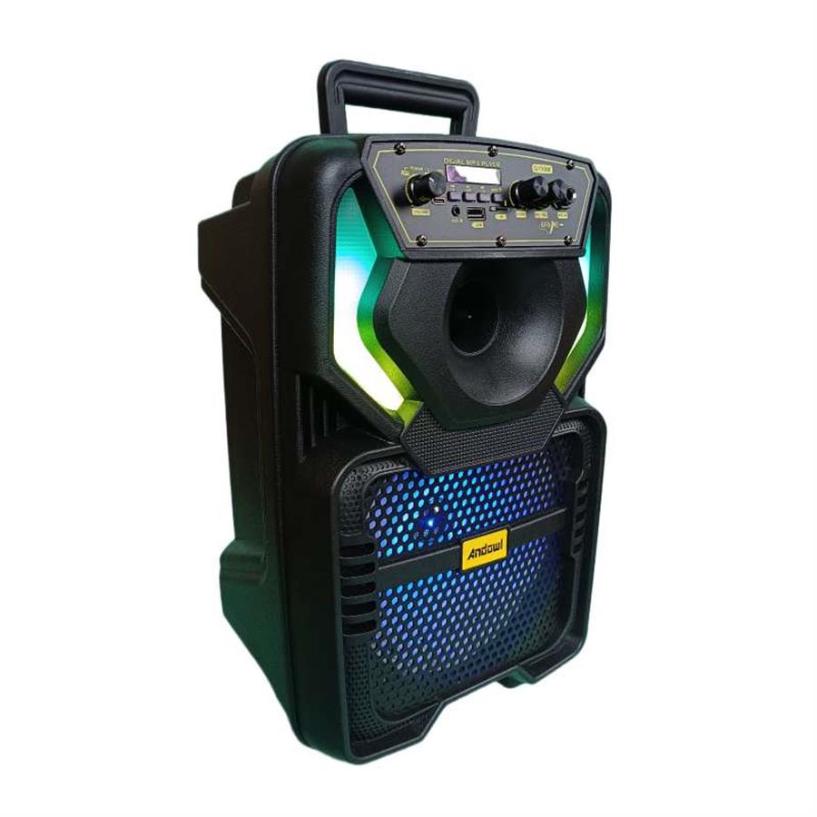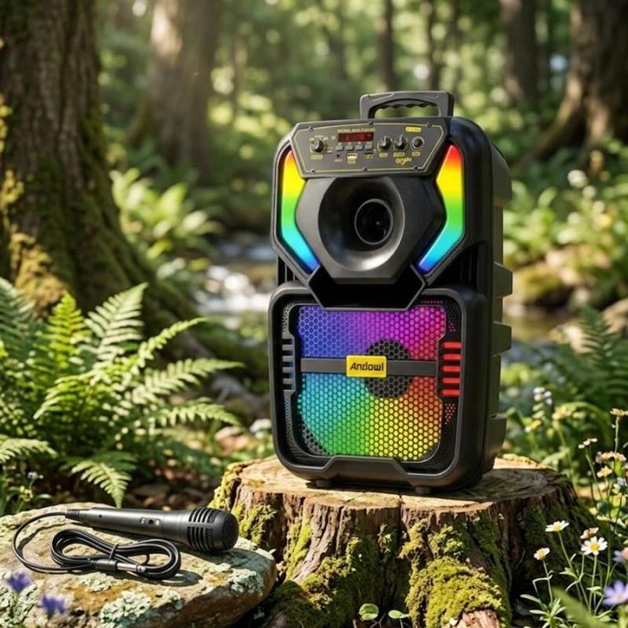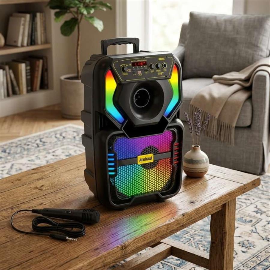 Andowl Q-YX808 არის მძლავრი და პორტატული აუდიო სისტემა, რომელიც შექმნილია წვეულებებისა და კარაოკე საღამოებისთვის. მისი 8-დიუმიანი დინამიკი უზრუნველყოფს ხმამაღალ და სუფთა ჟღერადობას, ხოლო მრავალფეროვანი RGB განათება იდეალურ სადღესასწაულო ატმოსფეროს ქმნის. კომპლექტში შემავალი სადენიანი მიკროფონი და დისტანციური პულტი მაქსიმალურად კომფორტულს ხდის მის გამოყენებას ნებისმიერ გარემოში.